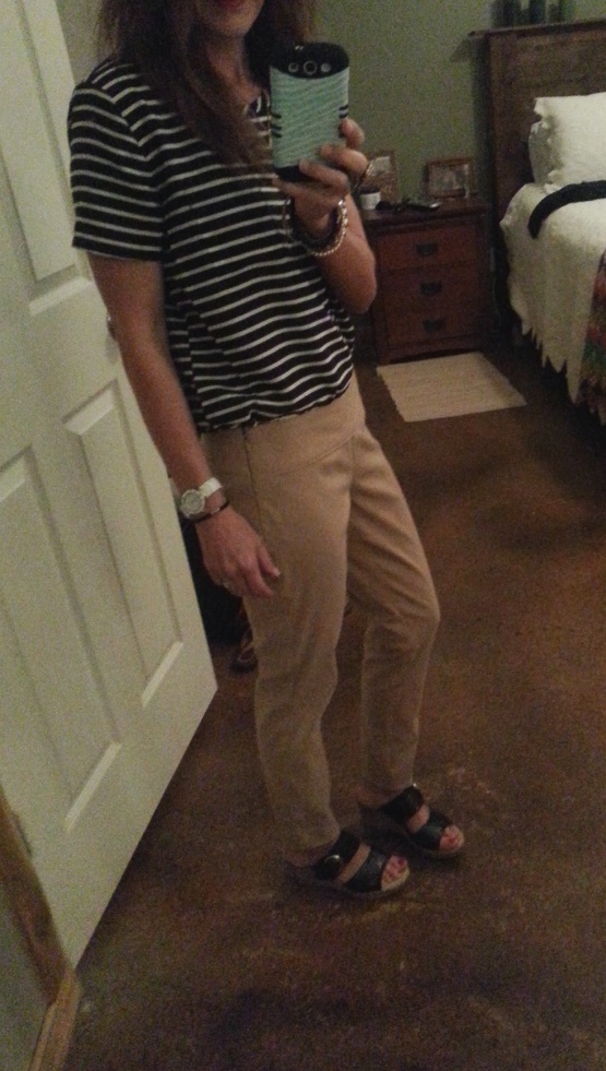 Today, I’m glad it’s Monday. I have my act together {unlike last week when I did not post at all on Monday} and am up for today’s challenge. When Caitlin posted the idea of taking something from childhood and updating it, I really stumped for quite a while. I haven’t thought much about childhood in…well, what feels like forever. But then I remembered an outfit from elementary that was one of my favorites. My mom made so many of my clothes when I was growing up and I always just took it for granted. Many a night I would look a stack of fabric and patterns and ask her to make {an item} and sometimes it would be ready for me to wear to school the next day. My mom was quite a seamstress! She was and is a very talented lady but sewing for her was an art, a masterpiece that had the perfect details each time. The right thread, the perfect button, top-stitched with the best color, etc. I was genuinely a well-dressed girl growing up.