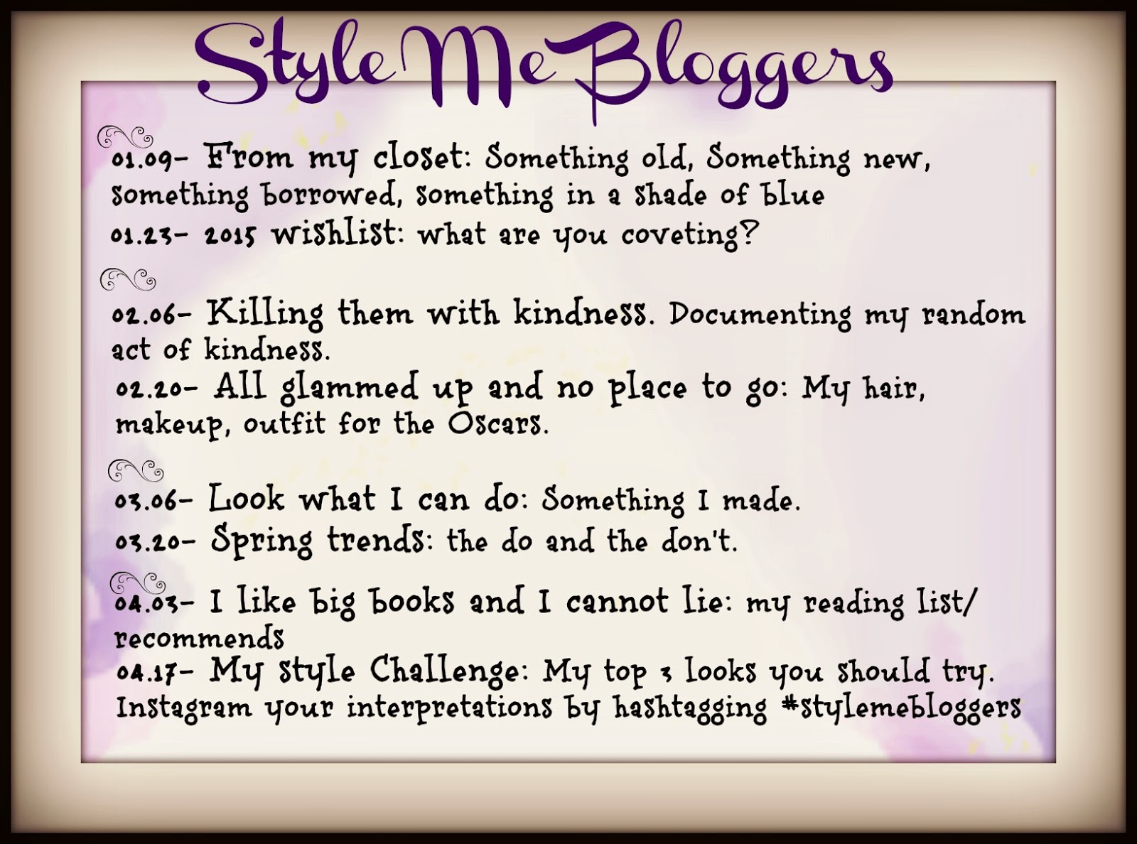 I am also going to participate in the Spring Style Me Challenge at Get Your Pretty On. This is how I met the lovely women that I blog with every other Friday. I decided not to be the party pooper so I signed up. We will linking up on Wednesdays. Are you interested in the GYPO Challenge? Do you need a little daily help getting dressed and adding a few new trends? Then click on the link below and get the details.