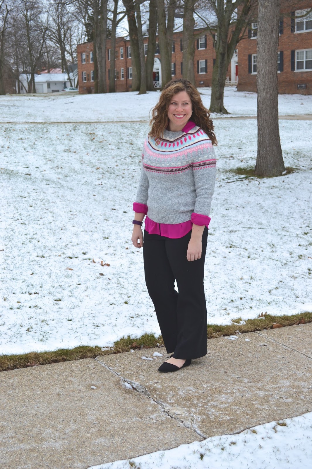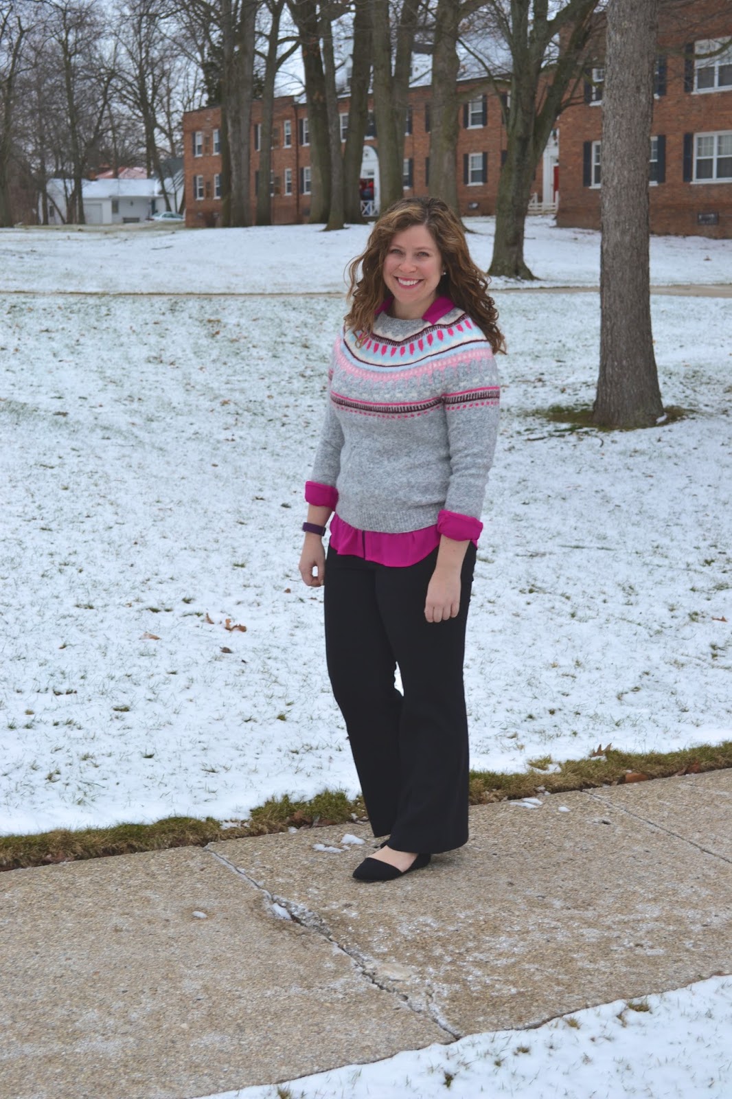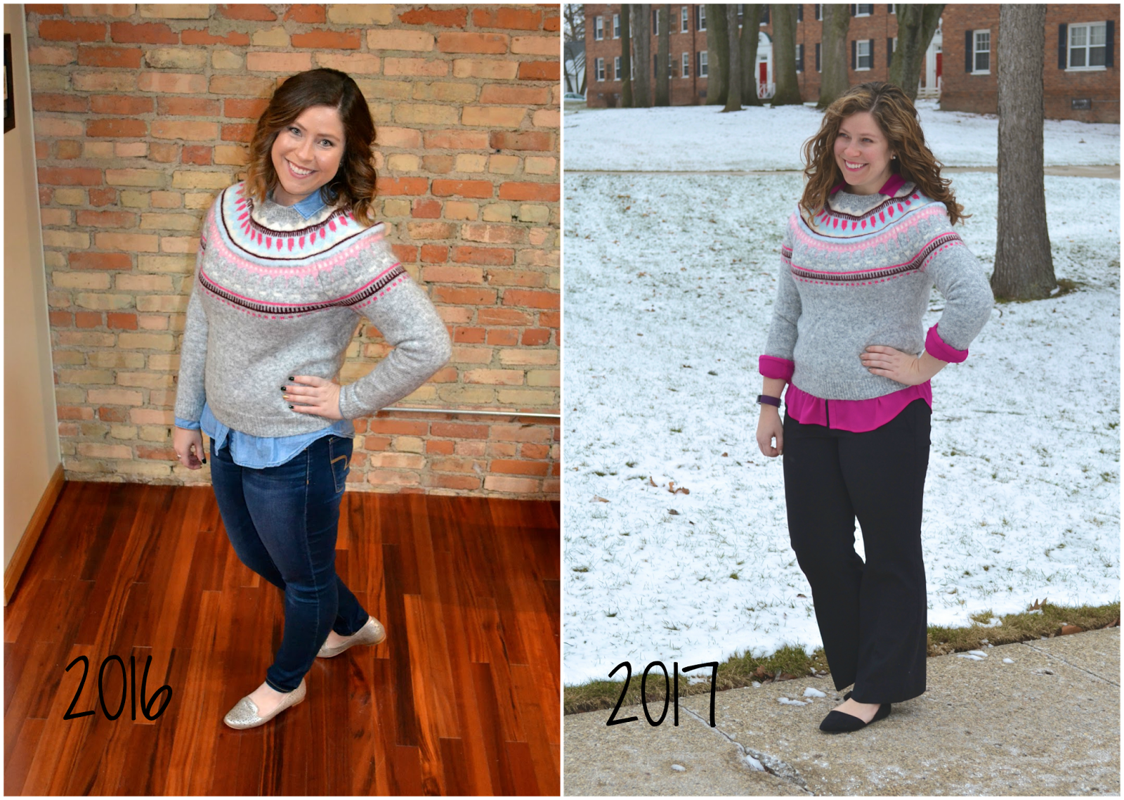 Apparently I really like wearing shirts underneath this sweater because I layered the exact same way one year ago! To change things up a bit, I decided to make this years’ version a work look!