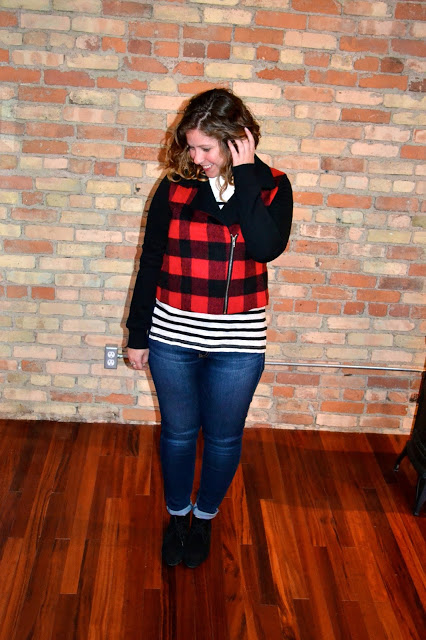 I received this cozy buffalo plaid jacket in one of my Le Tote deliveries in early September. For weeks it was too warm to even think about wearing a jacket, but I kept my Le Tote anyways because I just had to wear the jacket before I returned my goods and received another special delivery.