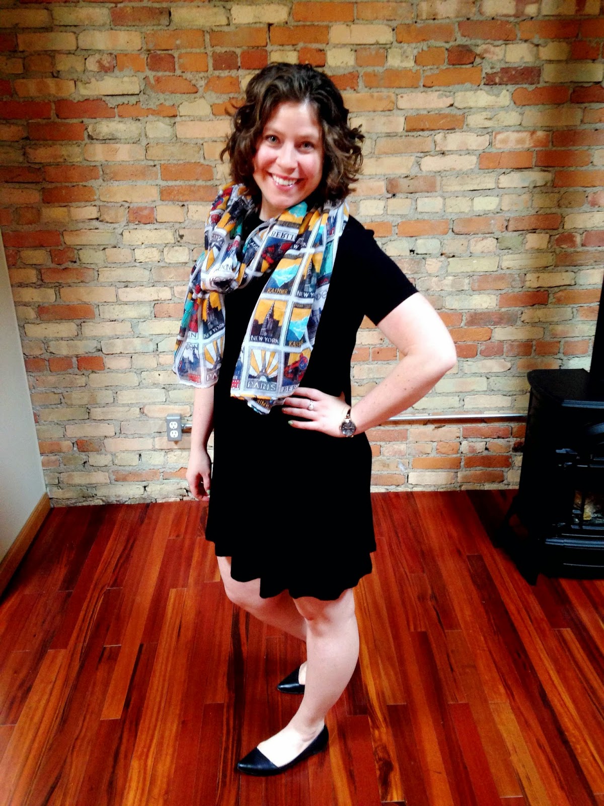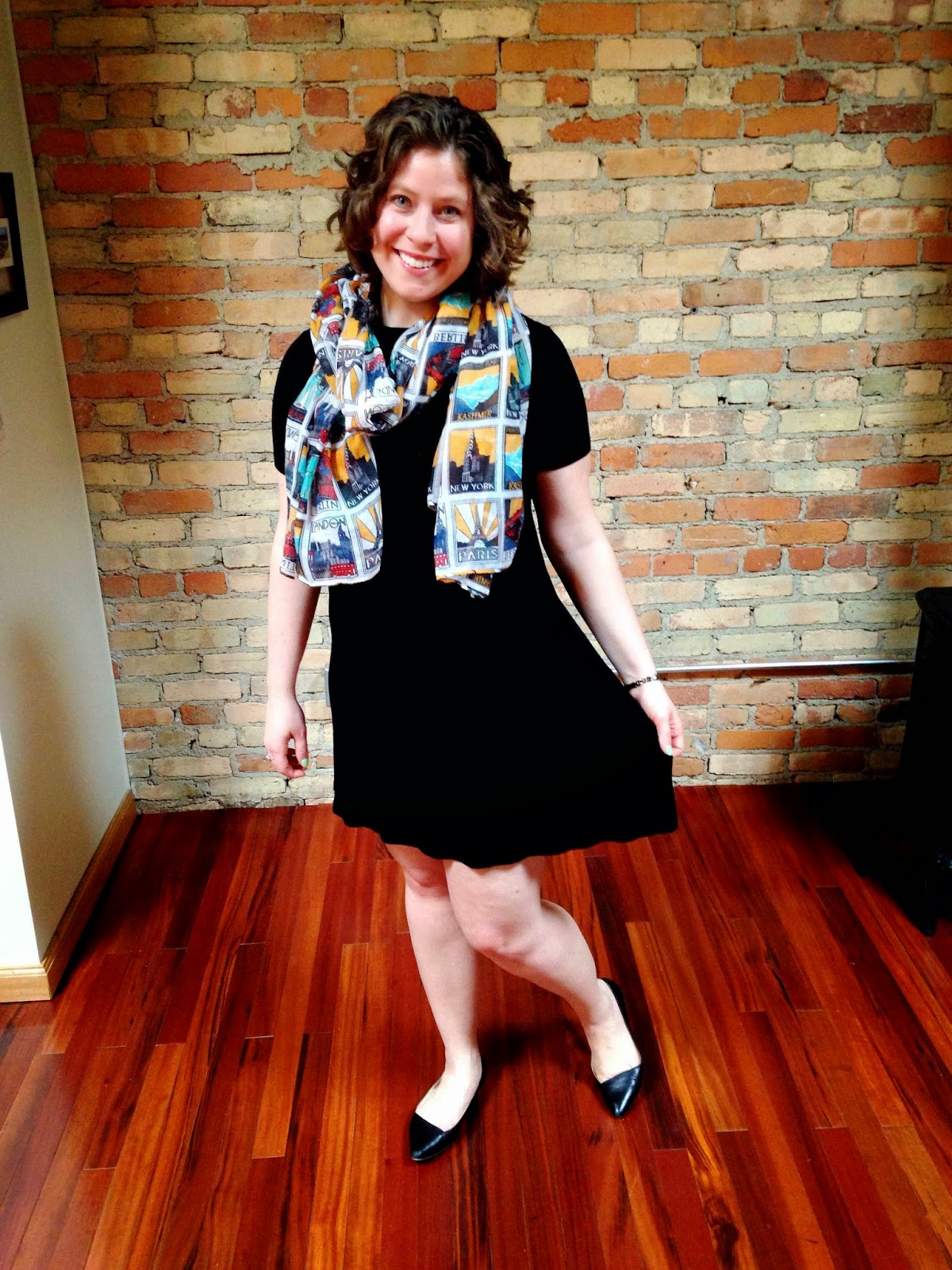 I don’t know about you, but throwing on a scarf is my favorite way to add interest to what I’m wearing when I’m feeling uninspired! It’s a simple way to jazz up a basic outfit (like this black swing dress) and a great way to let your personality shine through your ensemble.