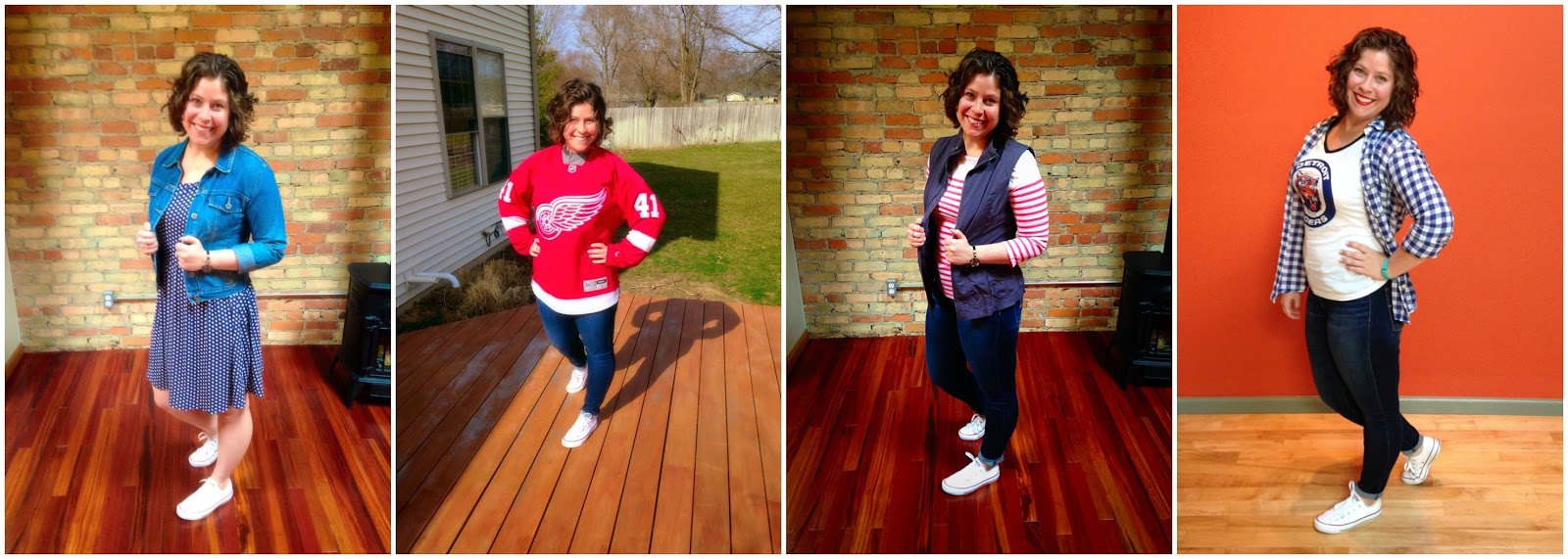 In April I treated myself by purchasing a pair of classic, white Converse sneakers. At first I was unsure about how this footwear would work with my typically feminine style. Three months later, however, they are one of my most-worn pair of shoes! They have made four previous blog appearances and have been worn countless other times.