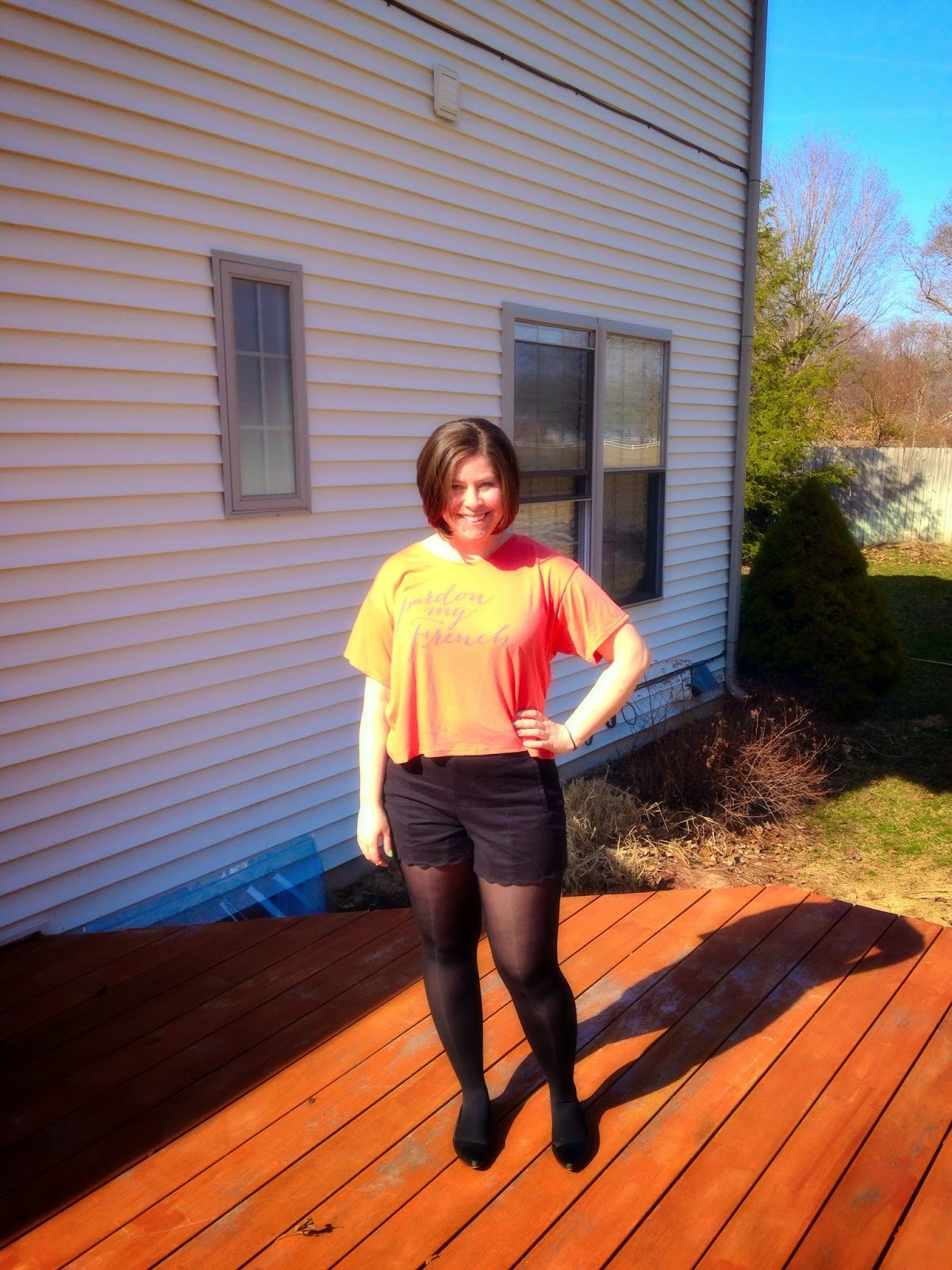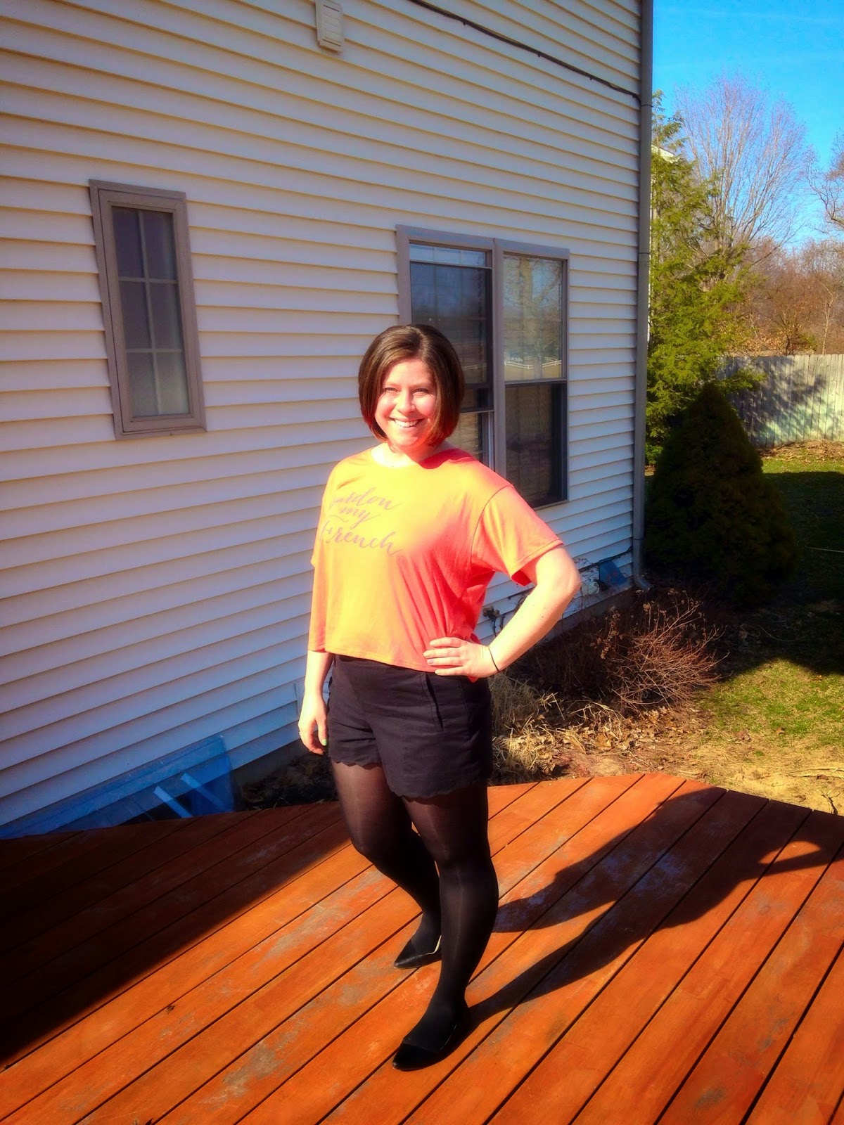 I’ve found myself totally into graphic tees in the past year or so! They are a fun way to express your style and personality because you can literally wear your interests on your sleeve (or chest, rather). As a French teacher, I naturally find myself drawn to all apparel featuring French phrases or the Eiffel Tower. I really do try to limit myself but when I came across this cropped “Pardon my French” number, I knew I had to add it to my collection.