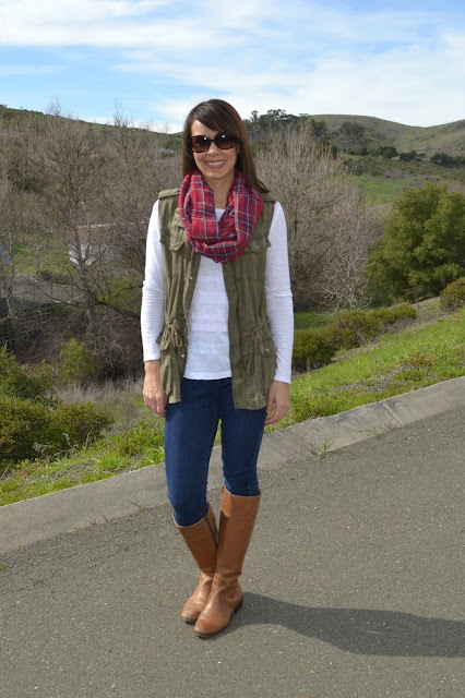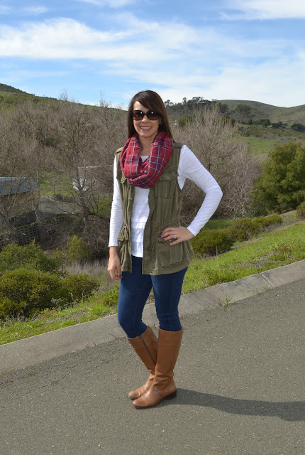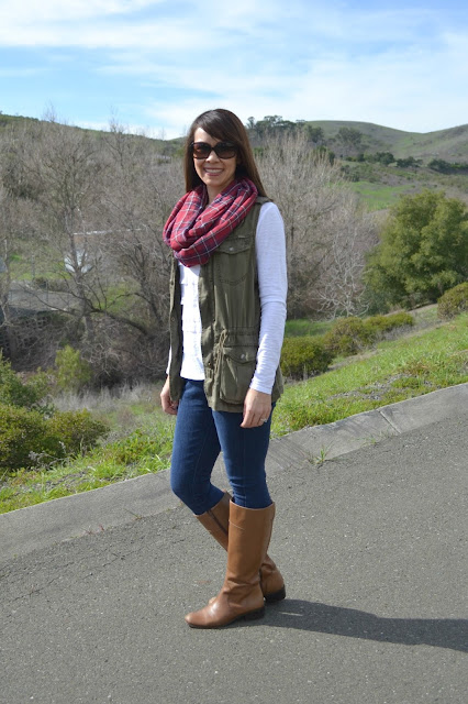 Happy Saturday, Friends!!! Hope you are all enjoying your weekend. Today I pulled out one of my FAVORITE summer/fall items-my cargo vest!! I never really thought about wearing it in the winter (i love it with jean shorts and my striped dress), but I never really thought about actually wearing it in the winter with jeans and boots!