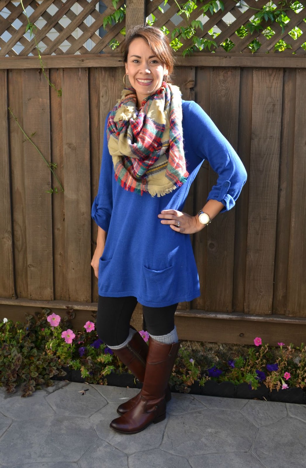This outfit is perfect when the temps start to drop (for good!) and you start to crave coziness and layers! I picked up this sweater tunic from Nordie’s last year and wore it so much last fall and winter. I found this “blanket scarf” at Sears (of ALL places! i think i went in to get a water filter for my ‘fridge and came out with a scarf!) and i like it because it’s a lot less bulky than the traditional giant blanket scarves. It’s still big and gives the same look, but without all the fuss.