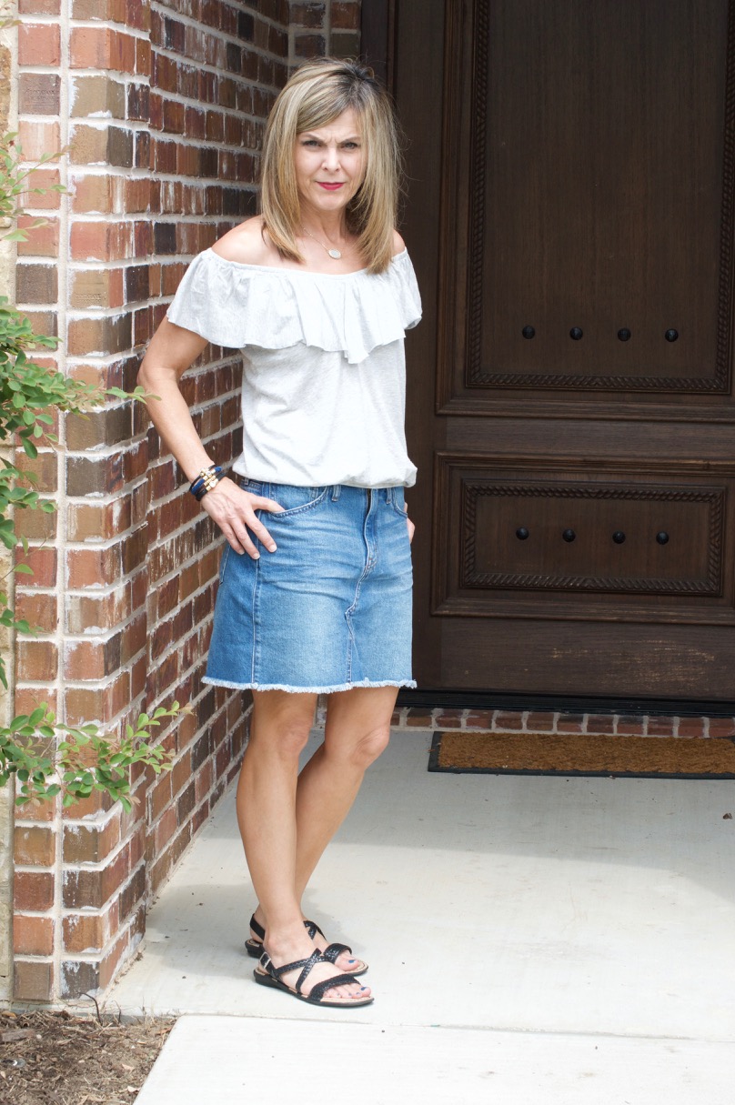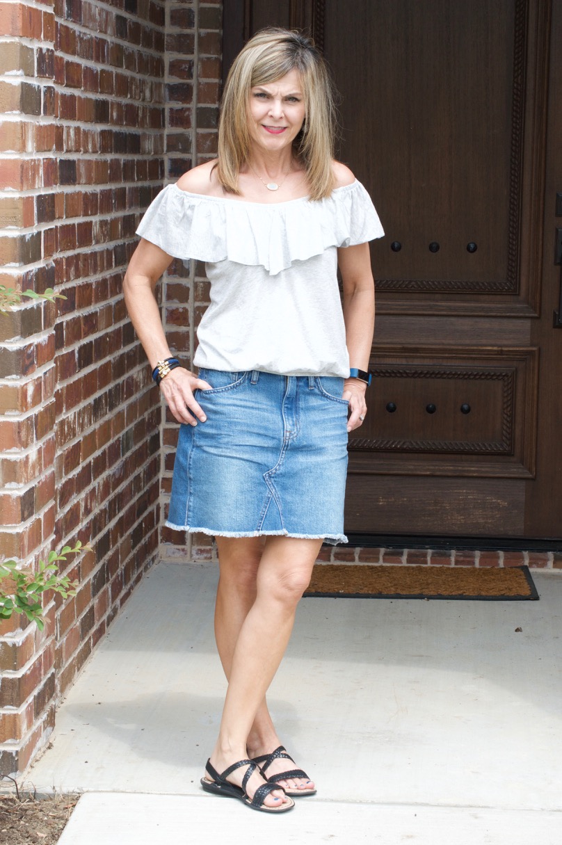 I have had a few denim skirts over the years, but for some reason, they make an exit. I’m thinking this won’t make it out the door for a loooongtime. I love it because it came in petite sizing, which is so much better for me.