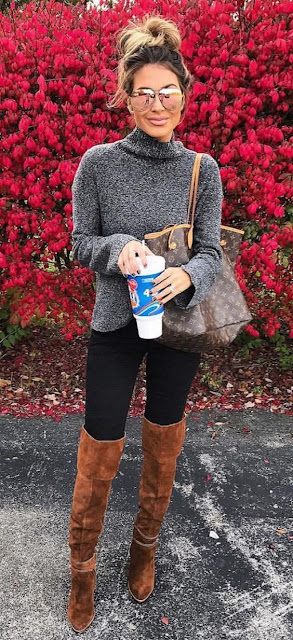 Over the knee boots. No need to say more…they are the bomb. I love this look more than words right now.
