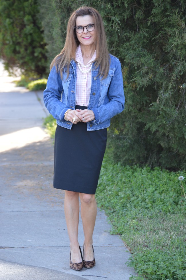 I pulled a pink gingham blouse from my spring pieces to feature with this look. Truth is I do like this pink blouse. It felt really good to able to embrace a little spring with this look. Hang on you sweet ones up north…warmer temps are coming!