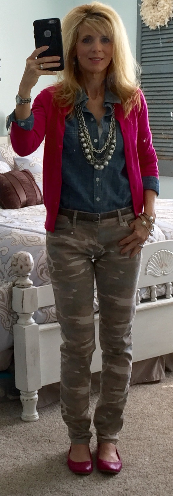 When I signed up for the GYPO 2015 Spring Challenge, I expected to get a shopping list, and a twenty-one day outfit capsule. What I didn’t expect was to love camouflage pants. At first I wasn’t even going to purchase them, then I thought challenge…push yourself outside of your comfort zone, just try them. I’m so glad that I decided to take the risk, they are my favorite piece from the shopping list. However, the best part of all, the Facebook page was something I never expected. Fifteen hundred women, different in size, shape, in different stages of life, and even from different countries coming together to encourage, empower, advise and pray for each other…a sisterhood of beautiful women, they are the best part of the challenge.