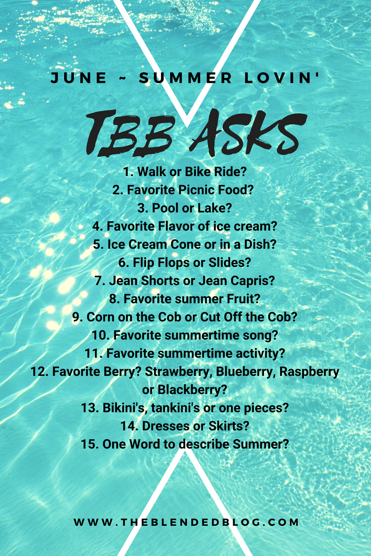 You know what happens on the first Monday of the month, right? It’s TBB Asks and it’s Summer Lovin’ time. I really enjoy these posts because it is super fun to learn more about so many of the sweet bloggers out there. Here goes: