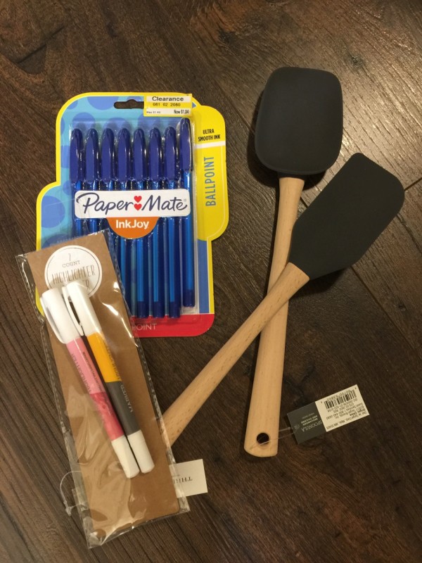 We seem to always need pens. I broke my only spatula and I already needed a second one, so that was a no-brainer. Markers/highlighters are perfect for my lettering goal. I did go over by a few cents even with my RedCard but I think I scored! I did want to buy a few of the other items but sometimes being practical is the best answer.