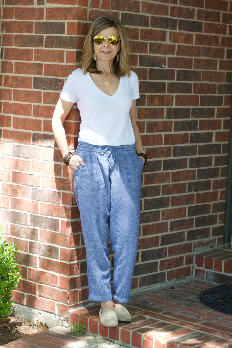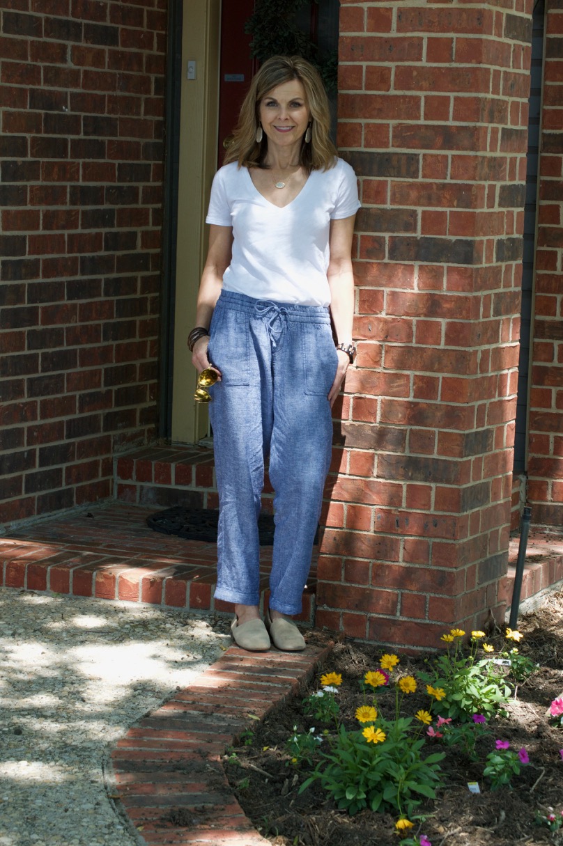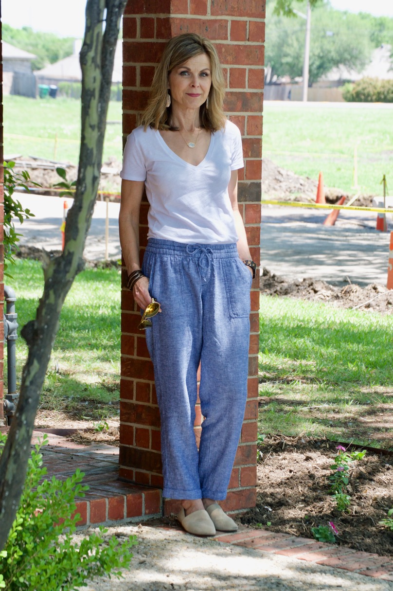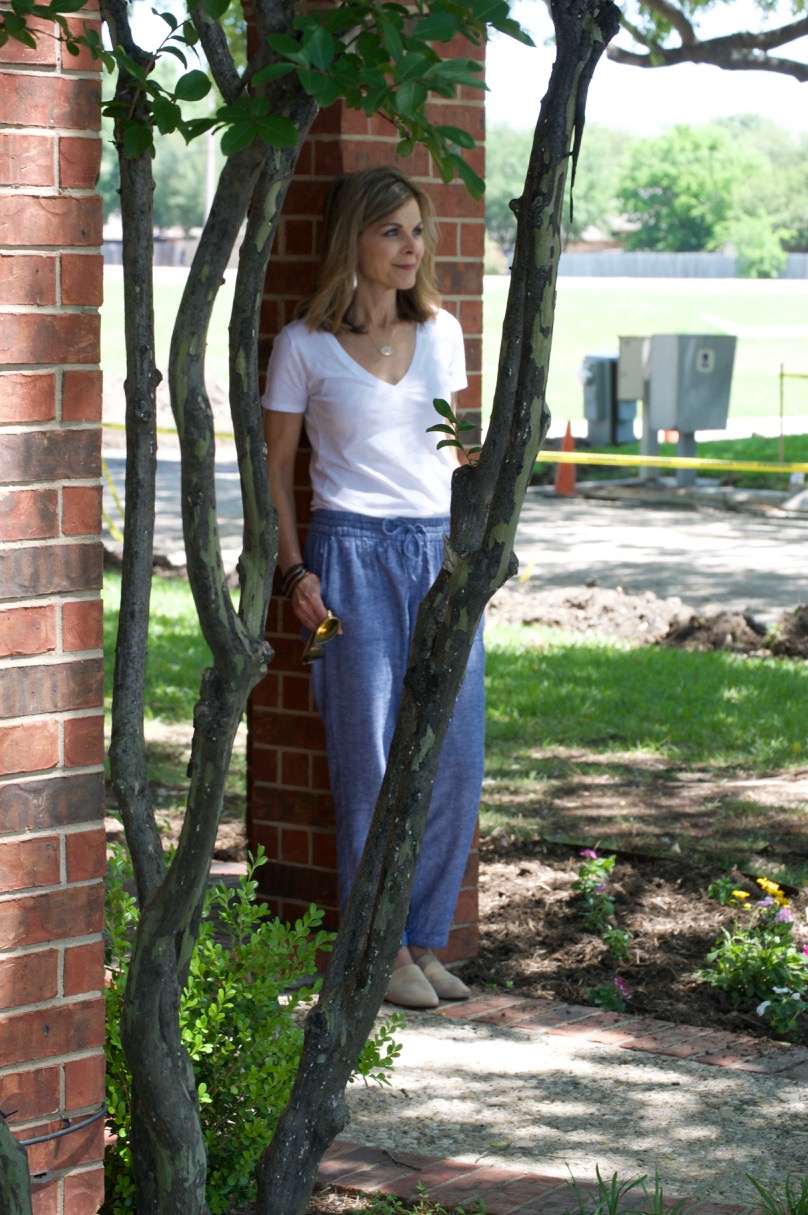 A white tee and comfy pants are a perfect combination. I need some different shoes though. I am working on it but sadly I am struggling to find shoes that I like so I’m making do with these little slip-ons.