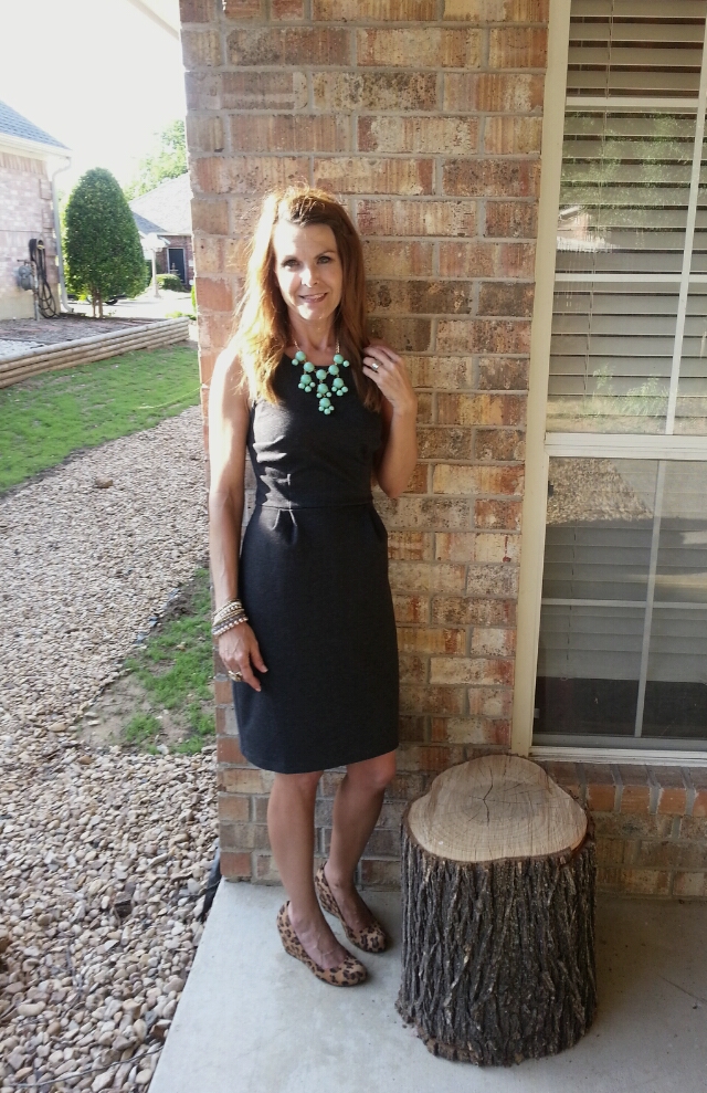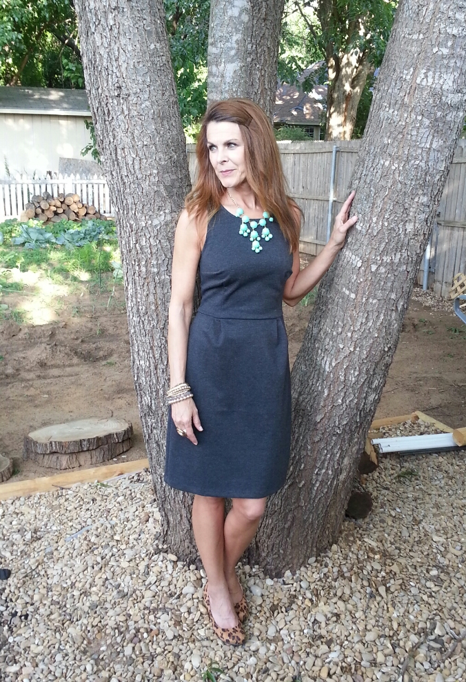 Honestly, since I have been participating in fashion challenges and learning to remix my wardrobe, I really thought getting dressed each morning was so simple. I have learned quite a bit about the little things that make an outfit. For example, a pop of color or a print or pattern of some sort just add a finishing touch. I’m posting my favorite look from last week that encompasses those elements. Simplicity, ease, comfort + a pop of color and a pattern. This dress is going to be a staple for many seasons down the road because layers can be added for warmth as well as tights and/or boots.