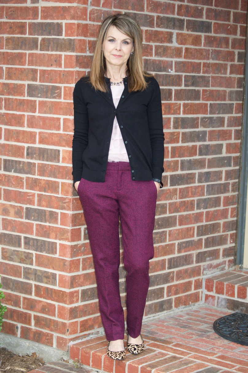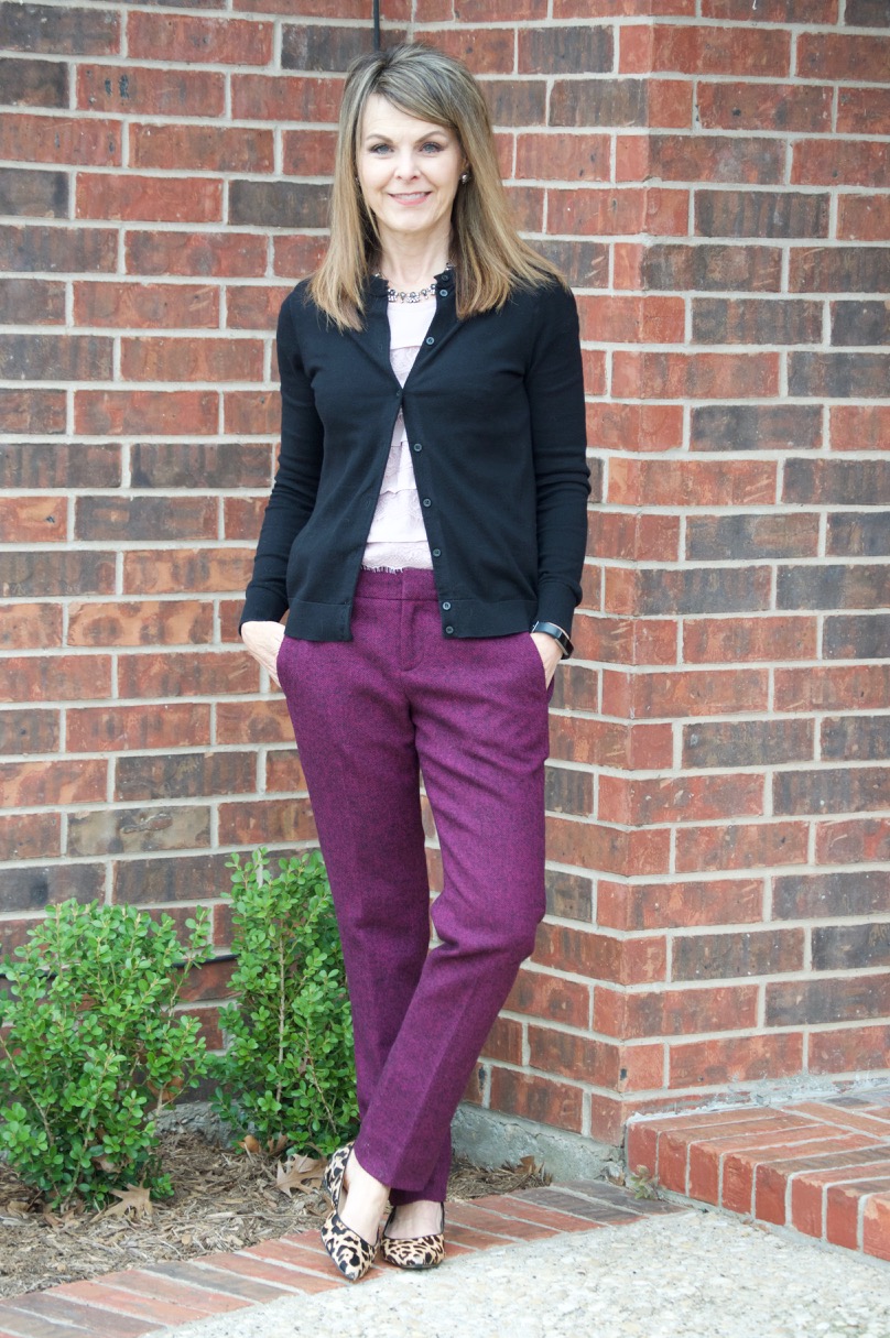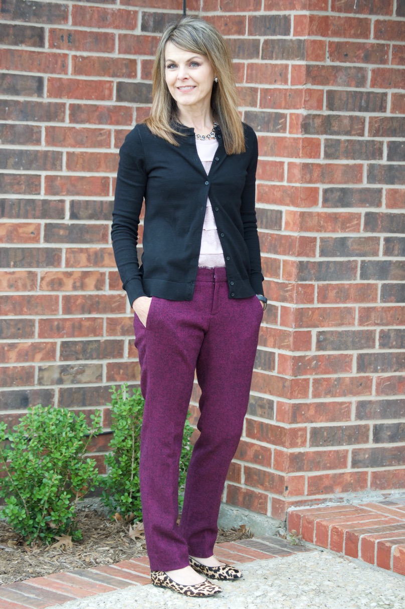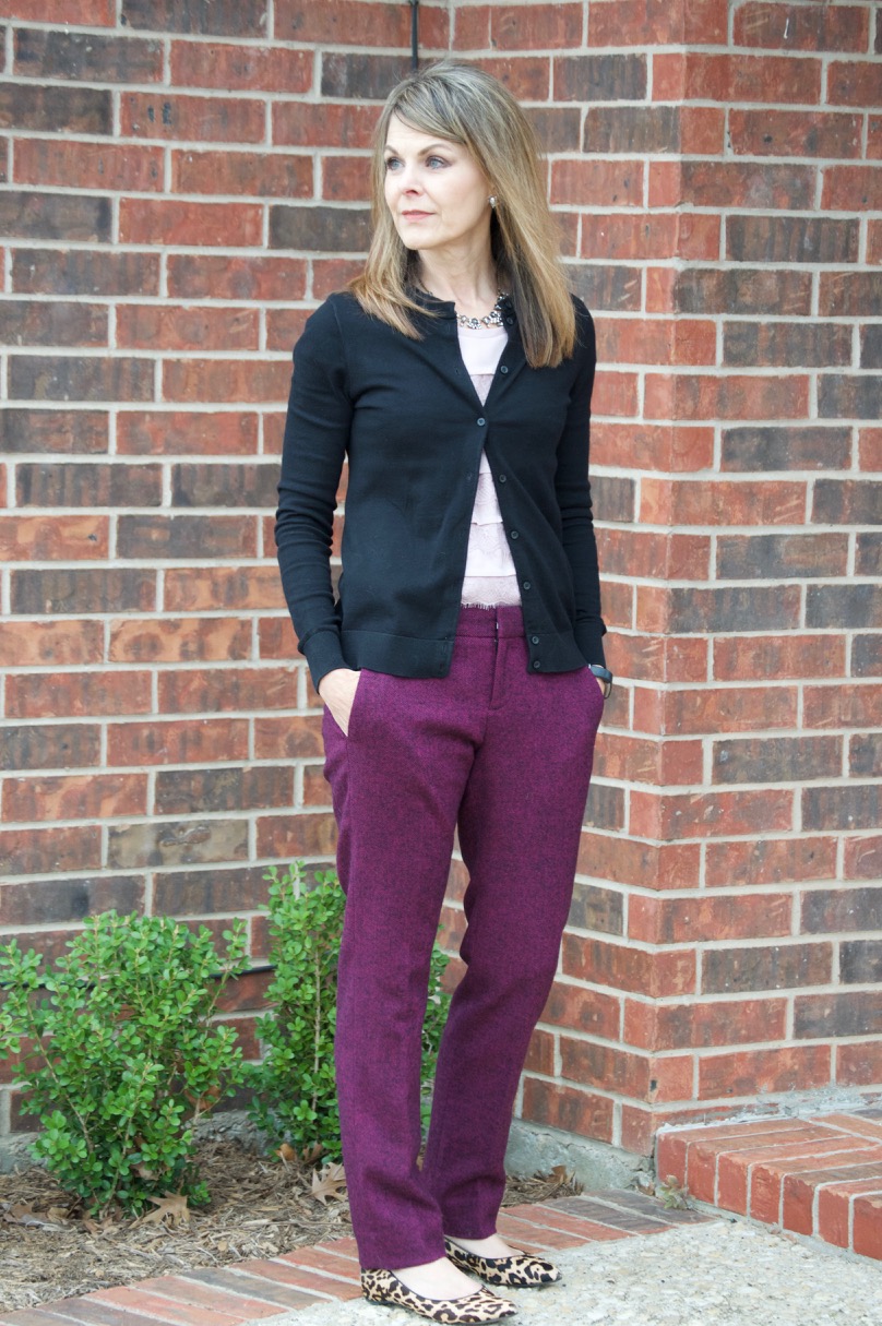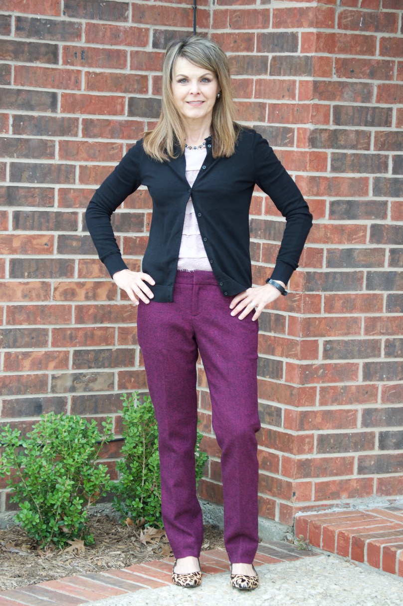 Lately, I’m all about trousers. I’ve decided that I’m a little over the fitted cropped pants…at least right now. Reasons? Well, they seem to shrink and I’m constantly pulling them down to my ankles all day long. Although the fit is good on those type of pants, trousers just allow for more breathing more. Trousers also feel a littl more professional for work.
